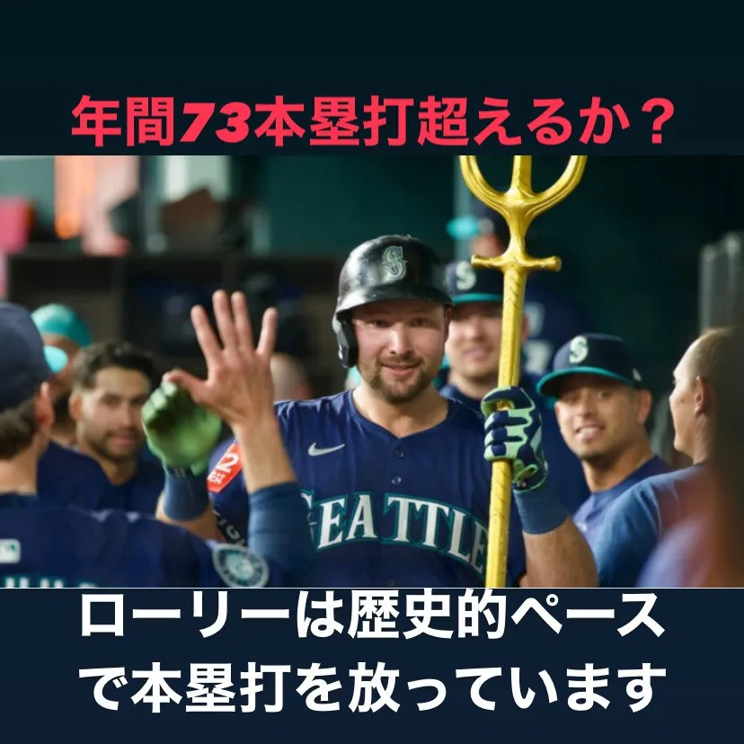 カル・ローリー選手がマリナーズのキャッチャーとしてメジャーリーグでの大活躍を見せています。開幕から75試合という短期間で30本塁打を達成し、その素晴らしい成績は2001年にバリー・ボンズとルイス・ゴンザレスが記録したもの以来の快挙です。バリー・ボンズはその年にシーズン73本塁打の大記録を残しましたが、ローリー選手の現在のペースもまた注目されています。