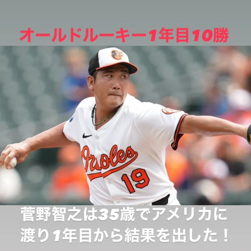 オリオールズの菅野智之投手がMLBの1年目で二桁勝利を達成しました。この成果は、彼が日本人メジャーリーガーとして10人目となる記録であり、大変喜ばしいものです。菅野投手と同様に、この記録を持つ他の選手たちも素晴らしい業績を残しています。中でも、35歳での達成は高橋尚成さんと並び、日本人メジャーリーガー1年目の二桁勝利の最年長記録となりました。一般的に35歳は選手生活の終盤とされる年齢ですが、彼はこの年齢で見事なパフォーマンスを見せています。