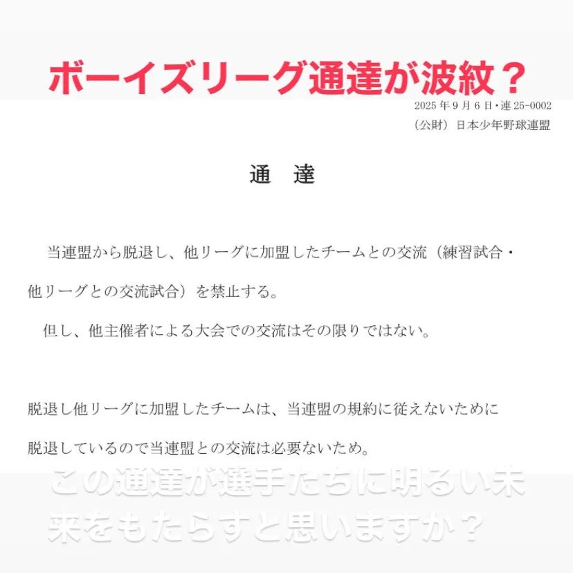 最近のボーイズリーグからの通達が、野球関係者の間で話題になっ...