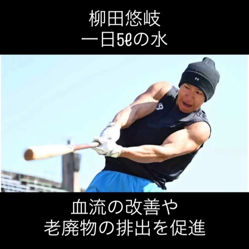 この水分補給によって、血流の改善や老廃物の排出を促進し、体のコンディションを整えることを目指しています。プロ野球選手である柳田選手の体作りは、多くの一般の人々にも参考になる部分が多いでしょう。無視されがちな水分の重要性に気づいた彼の取り組みが、来シーズンの活躍に大きくつながることを期待しています。人間の体の60%は水でできているため、この点を意識することが成果につながるのかもしれません。