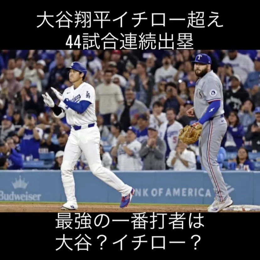 大谷翔平選手が偉業を達成し、イチローさんを超える44試合連続...