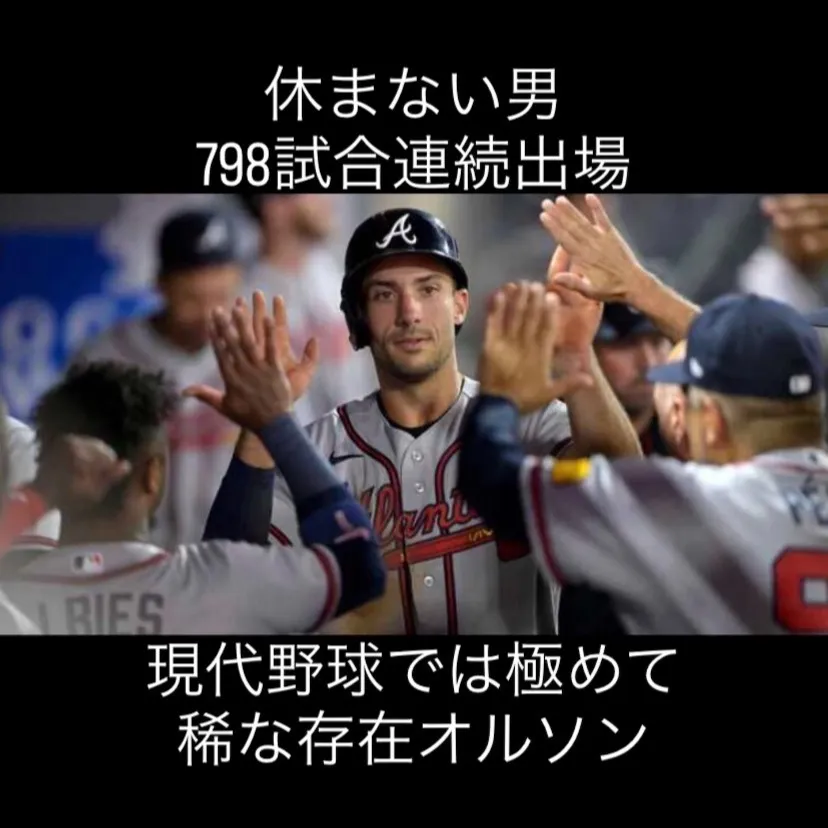 現代のメジャーリーグでは、選手たちは自身のコンディションを維持するために定期的に休息を取り、年間162試合のレギュラーシーズンとポストシーズンを戦い抜くことが一般的です。休息を取りながら最高のパフォーマンスを引き出すこのアプローチが主流となっている中で、ブレーブスのマット・オルソン選手は798試合連続出場という驚異的な記録を達成しました。